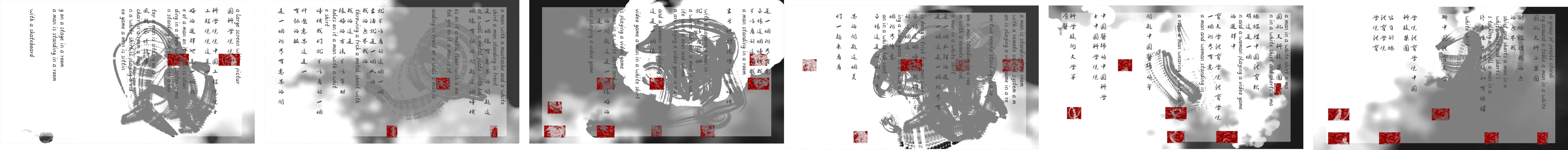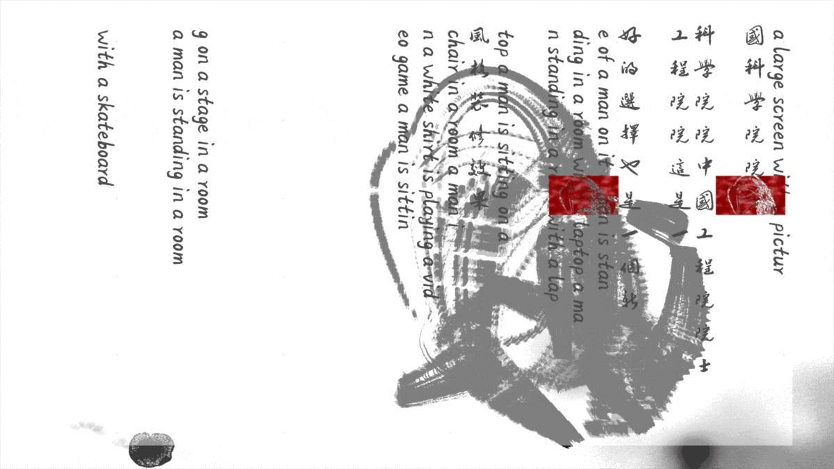 This piece engages the audience in generating ink strokes and effects from their motion input. Two customized neural networks generate bilingual inscrutable characters from the audience’s engagements through a “Motion Caption” process. Procedural algorithms derived from calligraphy research and “Four Principles” manipulate the generated characters and their layout compositions, responding to the motion data, and automatically “write” them in the Chinese calligraphy genre. This offers the audience an accessible method to interact with the calligraphy, regardless of their previous knowledge of this oriental art.
